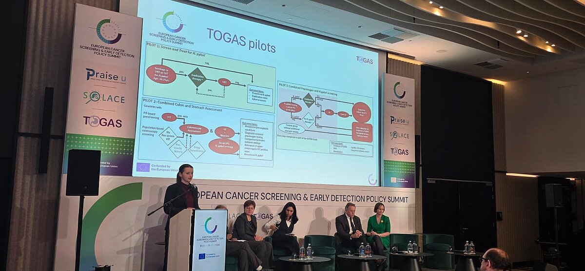 Latvija pašlaik vada Eiropas līmeņa projektu TOGAS (Towards Gastric Cancer Screening Implementation in the European Union), kura mērķis ir apkopot trūkstošos datus un izstrādāt ieteikumus organizēta kuņģa vēža skrīninga ieviešanai valstīs ar augstāko saslimstību. Vairākas valstis, tostarp Horvātija, Lietuva un Portugāle, jau izvērtē kuņģa vēža skrīninga ieviešanas iespējas, kamēr Latvijā, neskatoties uz augstāko saslimstību, šāds lēmums vēl nav pieņemts.