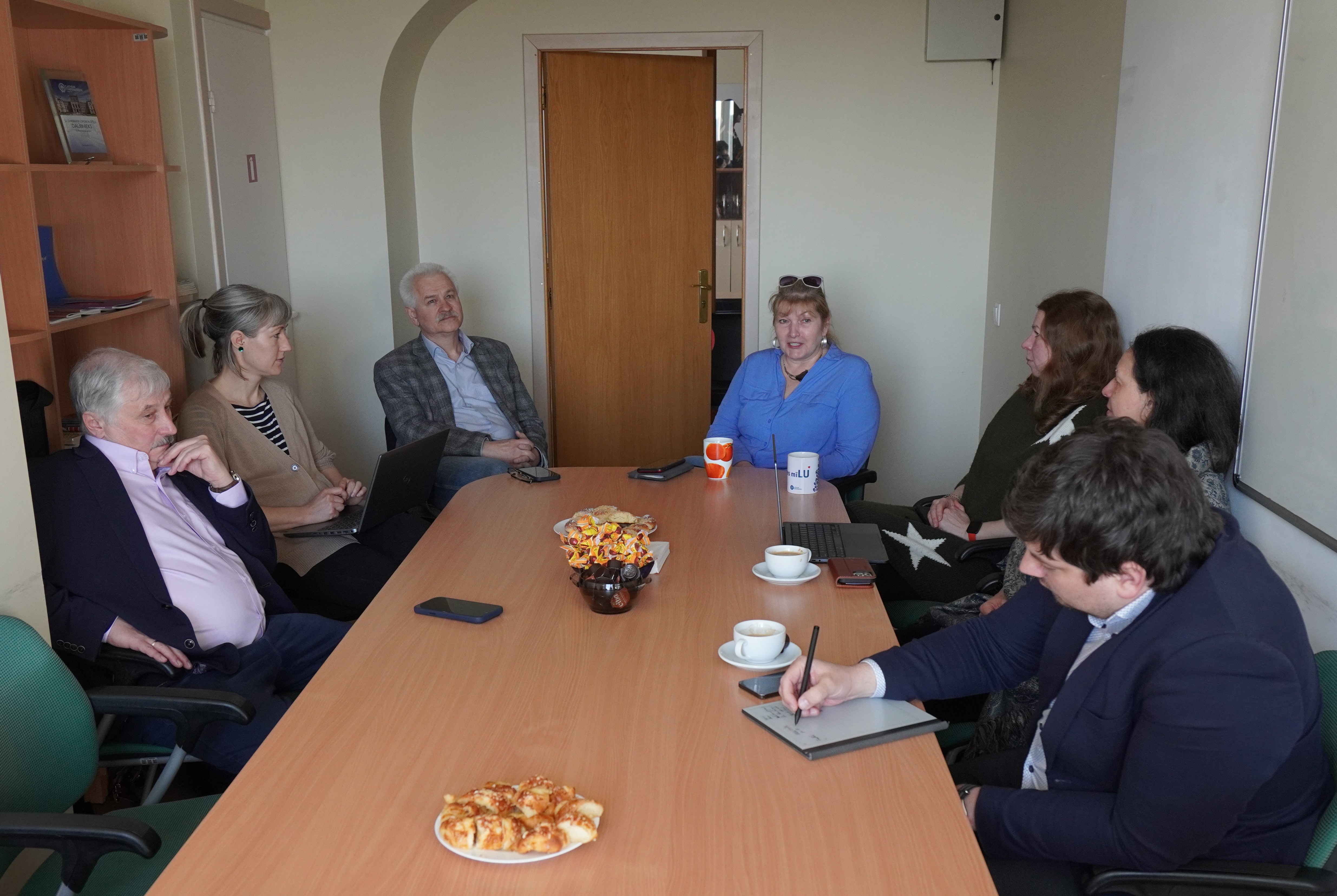 Institūtu pārstāvēja direktors, profesors Mārcis Leja, direktora vietnieks zinātniskajos jautājumos Ilmārs Stonāns un projektu administratīvā vadītāja Iveta Eniņa. Tikšanās reizē piedalījās arī LU Zinātnes departamenta direktore Antra Boča, LU Zinātniskās darbības nodaļas vadītāja Lina Ekere, LU KPMI vadošās pētnieces Signe Mežinska un Inese Poļaka, pētnieks Jānis Lazovskis, pētniece Dina Bēma un zinātniskā asistente Ilona Freilība. Tikšanās galvenais mērķis bija noskaidrot, kādas pārmaiņas institūtā notikušas pēc fakultāšu apvienošanas — vai ikdienas darbā jūtamas pozitīvas izmaiņas un vai samazinājies administratīvais slogs.